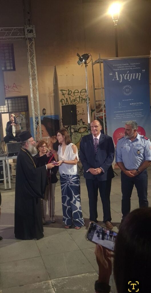 Την τιμητική πλακέτα απένειμε ο Πρόεδρος του Συλλόγου «Αγάπη», Σεβασμιώτατος Μητροπολίτης Ρεθύμνου και Αυλοποτάμου κ.κ. Πρόδρομος, στην Πρόεδρο του Περιφερειακού Τμήματος Ε.Ε.Σ. Ρεθύμνου, κα Ηλιάκη.